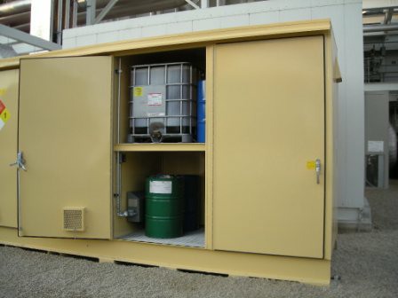 The latest concepts in hazardous material storage buildings, chemical storage buildings, double stacking of drums, seismic secondary containment shelving™